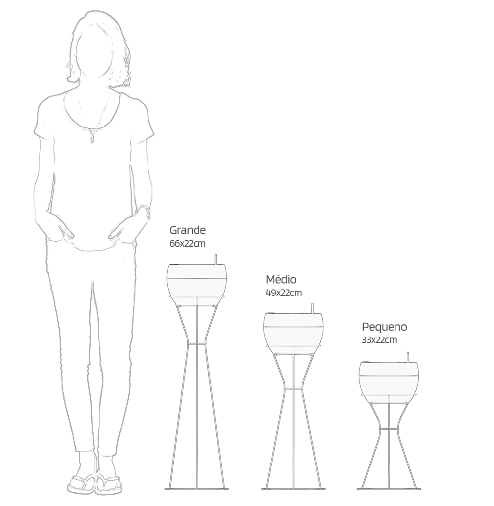 33cm de altura e 22cm de diâmetro - Projetado exclusivamente para o Vaso Médio Botanika para uso no chão, acompanha pés de borracha para proteção da superfície.